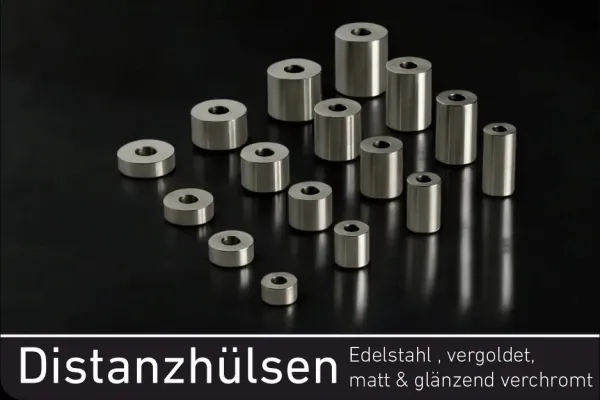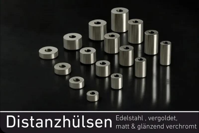 Distanzhülsen aus Edelstahl, Glanz - matt verchromt oder vergoldet