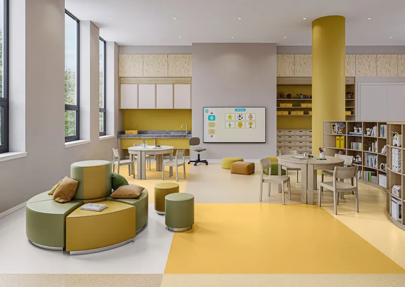 Das Premium-Sortiment von Tarkett umfasst homogene Vinylböden, die speziell für stark frequentierte Bereiche wie Schulen, öffentliche Gebäude sowie Gesundheits- und Pflegeeinrichtungen konzipiert wurden. Eine neue Premium Pro-Oberflächenausrüstung schützt zuverlässig vor Flecken, Kratzern und Chemikalien und erleichtert die tägliche Reinigung. Mit insgesamt 86 Farben eröffnet die Kollektion vielfältige Gestaltungsmöglichkeiten.