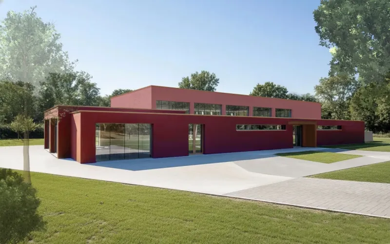 Ein wesentlicher Erfolgsfaktor der Planung war die intensive Abstimmung mit den künftigen Nutzergruppen. Um sicherzustellen, dass die neue Eisweinhalle den realen Bedarfen des Dorflebens entspricht, wurde das Konzept in enger Korrespondenz mit der Stadtverwaltung und den lokalen Akteuren entwickelt. Das Ergebnis ist eine echte Multifunktionalität: Während die benachbarte Grundschule künftig auf moderne Flächen für den Schulsport zurückgreifen kann, erhalten die zahlreichen Vereine in Dromersheim eine Versammlungsstätte, die durch den neuen Bühnenanbau und das akustische Faltwandsystem völlig neue Möglichkeiten für kulturelle und gesellschaftliche Veranstaltungen bietet.