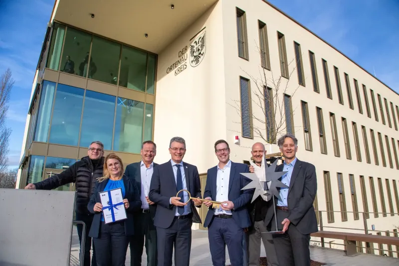 Landrat Thorsten Erny betonte: "Unser Neubau in Kehl ist ein Vorzeigeprojekt für eine nachhaltige Verwaltung. Das moderne Verwaltungsgebäude schafft Bürgernähe durch die Zusammenführung unserer Dienststellen und setzt wichtige Impulse für den Klimaschutz." Die Integration der Dienststellen unter einem Dach erlaube es, die Arbeitseffizienz zu steigern, Synergieeffekte zu erzielen und Kosten zu reduzieren.
