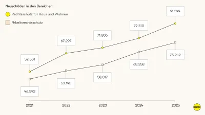 Wohnen ist nicht mehr nur teuer, sondern für viele Verbraucher ein dauerhaftes Konfliktfeld - etwa durch gestiegene Nebenkosten, Mieterhöhungen oder Streit über Mängel. Im ARAG Trendmonitor Recht zeigt sich deshalb auch im Mietrechtsschutz eine besonders dynamische Entwicklung. Die ARAG beobachtet zudem ein verändertes Verhalten: Viele Kunden setzen ihre Ansprüche bereits bei kleineren, dreistelligen Beträgen rechtlich durch. "Gerade diese Fälle nehmen stark zu. Hierbei wird deutlich, dass die finanziellen Puffer der Verbraucher sichtbar schrumpfen", unterstreicht ARAG Vorstand Hanno Petersen.
